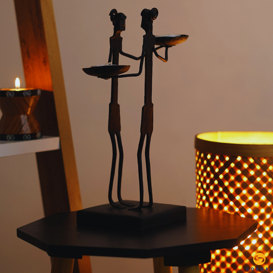Tribal Couple Candle Stand | Wrought Iron Tealight Candle Holder | Coshal | CI37