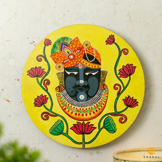 Shreenath Ji Pichwai Hand-Painted Wall Plate | Artistic Wall Decor for Home and Office Art from Rajasthan | Coshal | S12