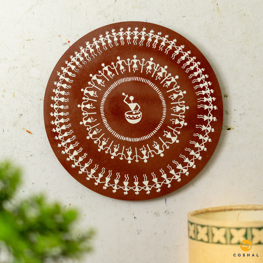 Warli Hand-Painted Wall Plate | Artistic Home and Office Decor from Maharastra | Coshal | S09