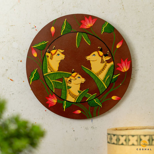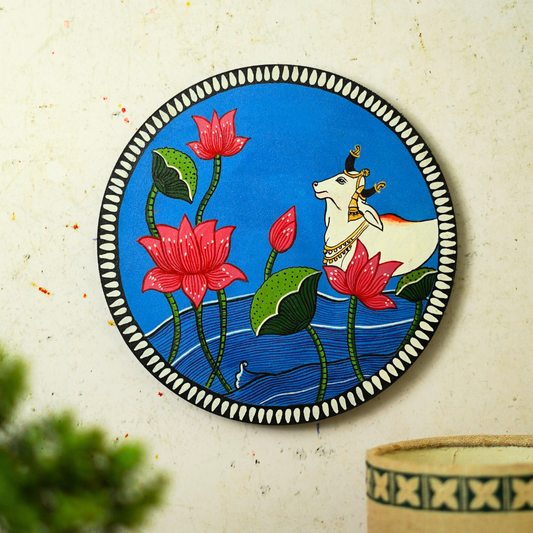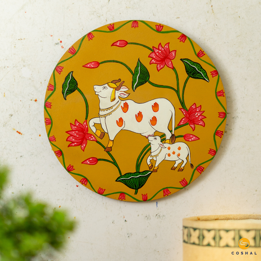 Nandi Pichwai Hand-Painted Wall Plate | Artistic Wall Decor for Home and Office Art from Rajasthan | Coshal | S15