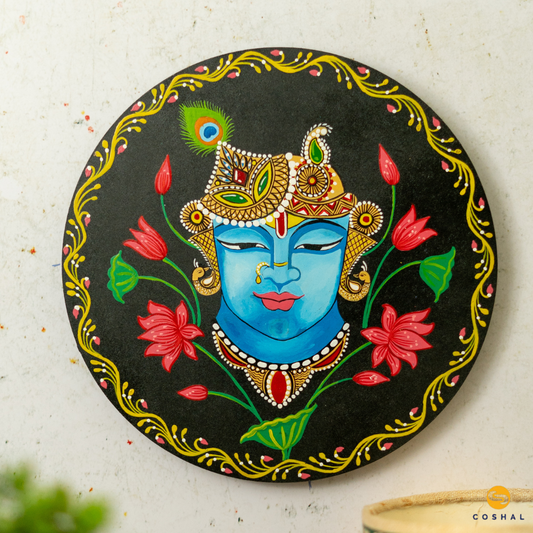 Shreenath Ji Pichwai Hand-Painted Wall Plate | Artistic Wall Decor for Home and Office Art from Rajasthan | Coshal | S13