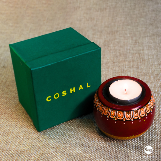 Pattachitra Wooden Handpainted Tea-light Holder | Best for table decor | Coshal | OD65