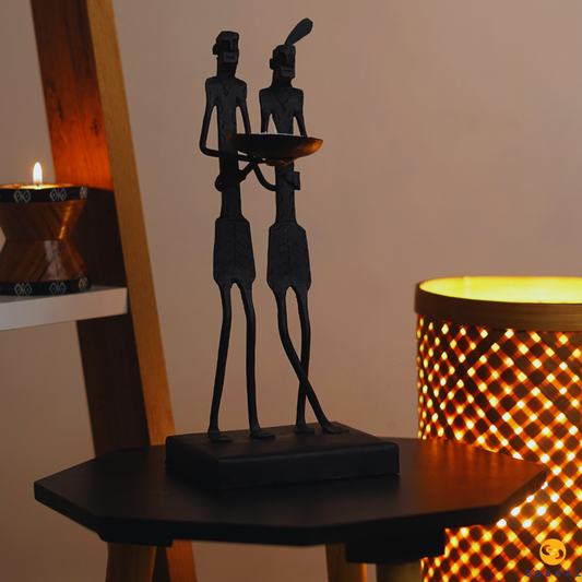 Wrought Iron Tribal Couple Candle Stand | Tribal Tealight Candle Holder | Coshal | CI36