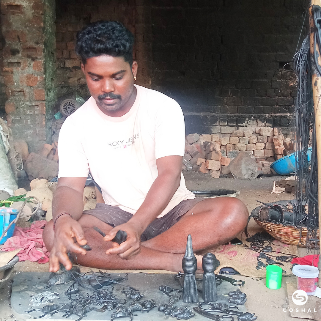 In the Maoist-affected Kondagaon region of Chhattisgarh, you will meet Vikas Baghel, a native of Bhelwapadar, Kondagaon. An upcoming practitioner of Dhokra Art/Garhwa Kala in Chhattisgarh's Bastar area.